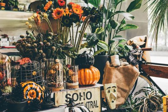 他们几乎把整个侏罗纪公园直接搬了过来,除了那些见都没见过的绿植、干花等等硬货,里面还掺杂着不少潮流元素——把高邦帆布鞋用作装饰与绿植挂一起你可能头一次看见。店内各种尺寸的绿植都有,无论放桌上还是地上,哪怕是挂天花板的都能在这找到。